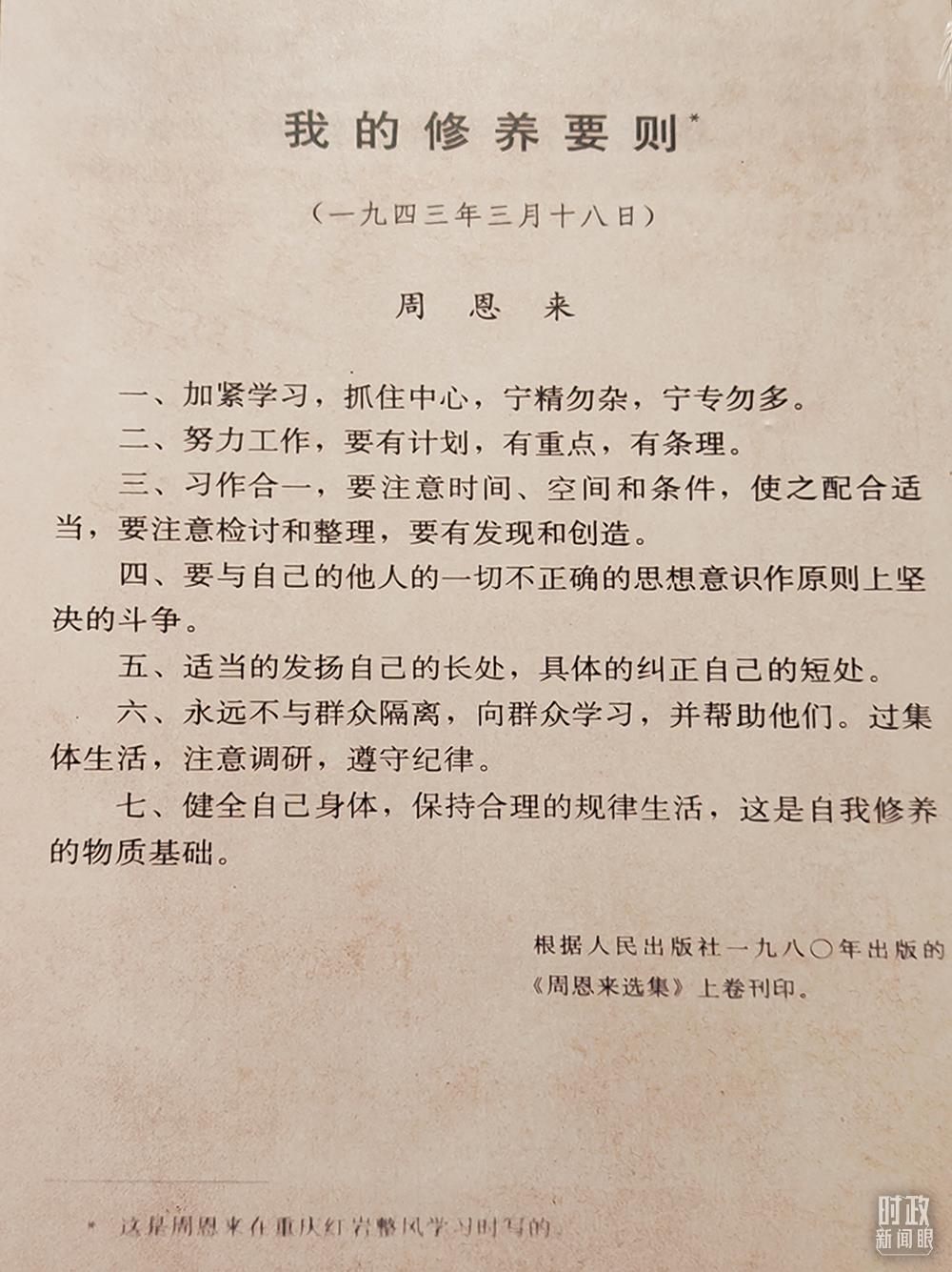 △周恩來所寫《我的修養(yǎng)要則》。(總臺央視記者彭漢明拍攝)