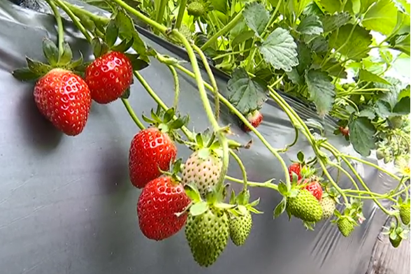 陜西省西安市高陵區(qū)東張市村農(nóng)業(yè)觀光采摘園目前已建成3棟現(xiàn)代溫室大棚,占地4000余平方米,采用空間利用率高、草莓容易吸收養(yǎng)分,且便于采摘管理的國內(nèi)最新超高壟草莓種植技術,引進栽植“鳳冠”“隋株”“白雪公主”等優(yōu)質(zhì)草莓35000株。