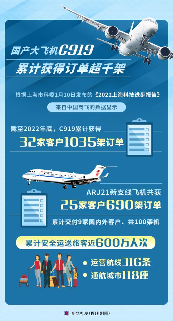 根據(jù)上海市科委1月10日發(fā)布的《2022上??萍歼M(jìn)步報(bào)告》,來自中國商飛的數(shù)據(jù)顯示,2022年12月,C919大型客機(jī)首架機(jī)交付首家用戶東方航空公司,邁出市場運(yùn)營“第一步”。截至2022年底,C919累計(jì)獲得32家客戶1035架訂單。