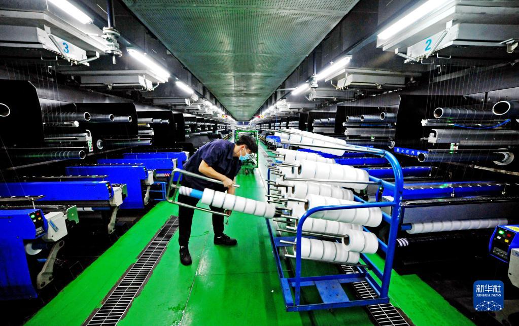 1月17日,在江蘇省連云港市一家氨綸公司,工人在車間生產(chǎn)線上忙碌。新華社發(fā)(王春 攝)