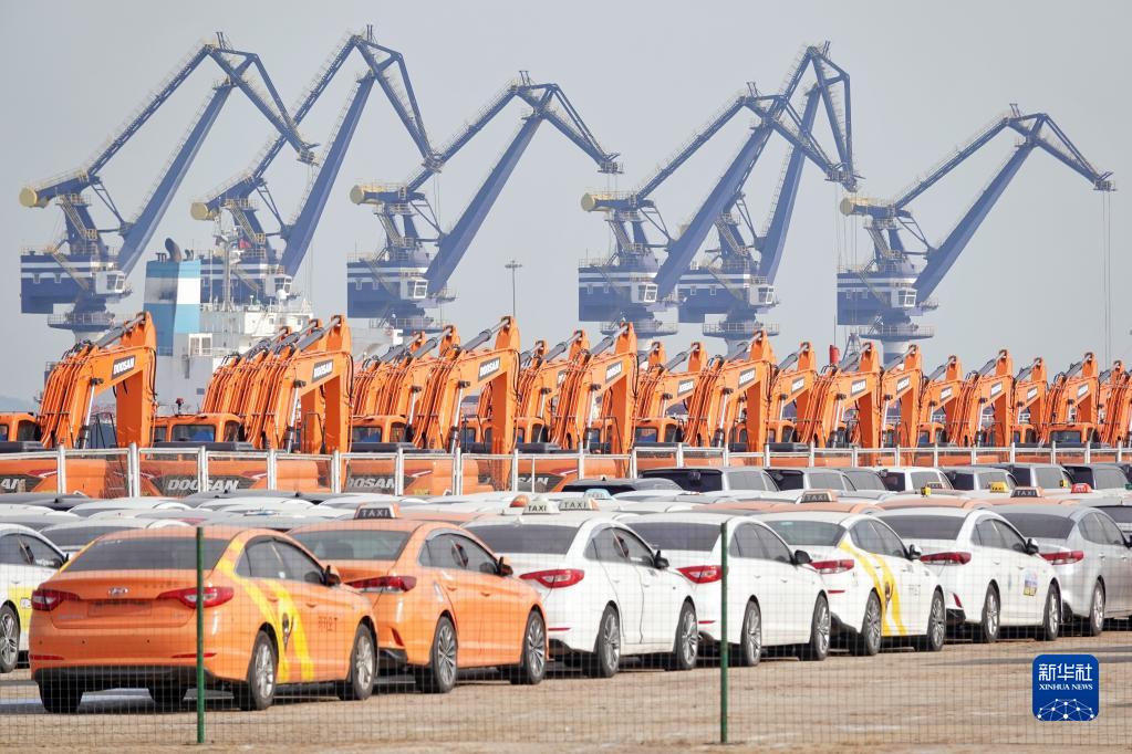 1月17日,在山東港口煙臺(tái)港,起重機(jī)為貨輪裝卸貨物。新華社發(fā)(唐克 攝)