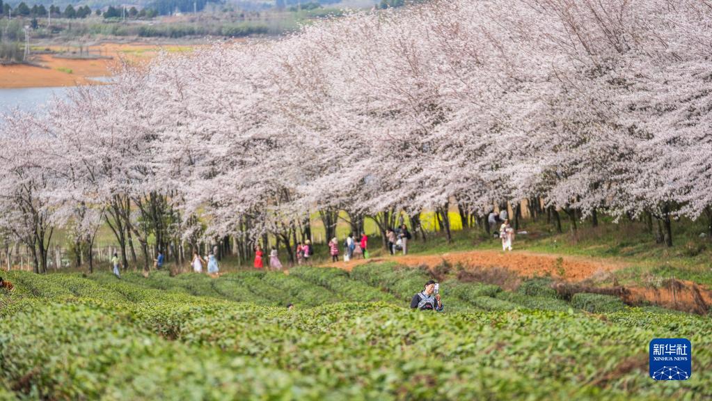 近日,貴州省貴安新區(qū)櫻花園內(nèi)的2.4萬畝櫻花競(jìng)相綻放,如雪似霞,吸引游客前來賞花觀光?!?/p>
