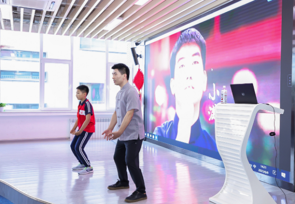 作為示范活動(dòng),北京理工大學(xué)附屬實(shí)驗(yàn)學(xué)校除了開(kāi)展主題日活動(dòng),還開(kāi)設(shè)了其他特色課程,舉辦中醫(yī)藥游園會(huì),吸引眾多學(xué)生參與?;顒?dòng)現(xiàn)場(chǎng),非遺傳承人代金剛手把手指導(dǎo)同學(xué)們練習(xí)八段錦。在中醫(yī)藥文化知識(shí)角,一名同學(xué)正跟著屏幕上的動(dòng)作指引練習(xí)五禽戲。除了智能互動(dòng)系統(tǒng),學(xué)校還專(zhuān)門(mén)布置中醫(yī)藥展覽、藥物標(biāo)本、器具模型等,讓同學(xué)們時(shí)時(shí)感受多樣的中醫(yī)藥文化。