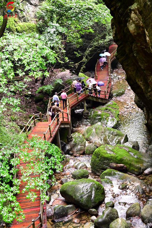 景區(qū)內(nèi),奇險(xiǎn)峽谷,清流飛澗,匯聚了山水靈秀之美。蒼郁古樹,山泉婉轉(zhuǎn),鬼斧神工的波光水色,如詩如畫的景致讓游客流連忘返。