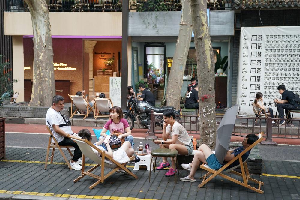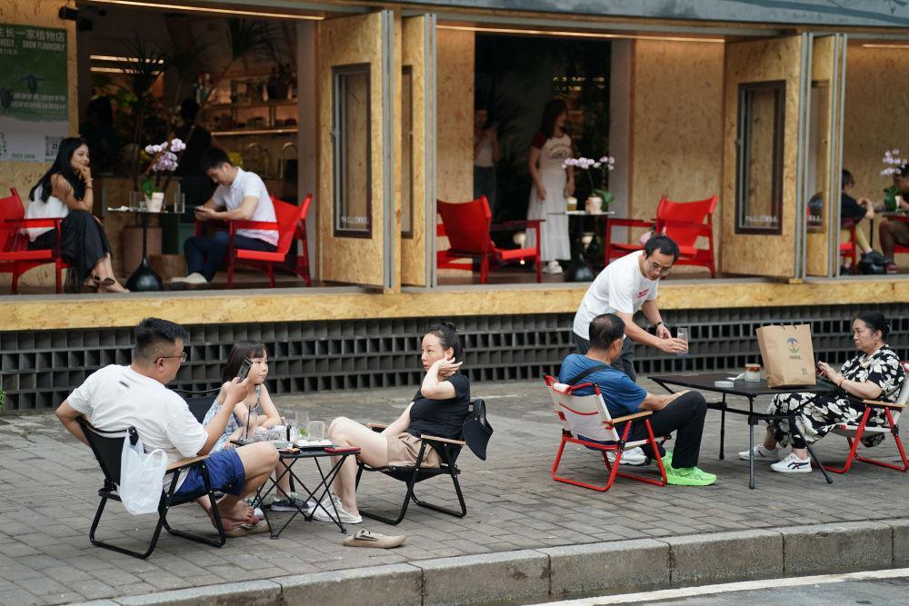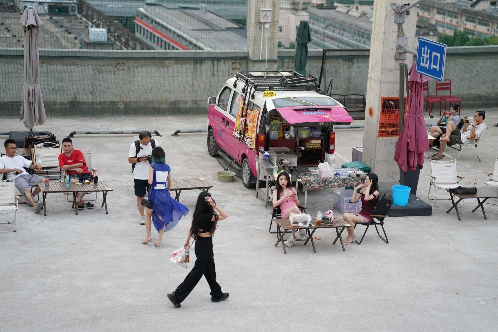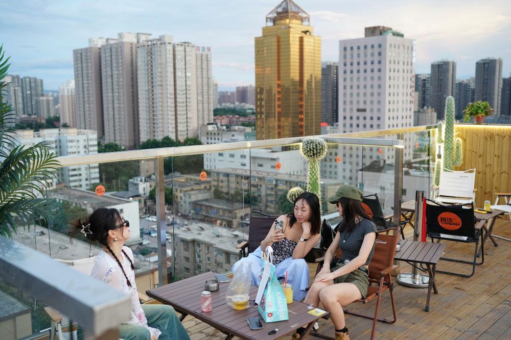 7月26日,年輕人在一棟由停車樓頂層改造而來(lái)的飲品店內(nèi)消費(fèi)休閑。新華社記者 邵瑞 攝