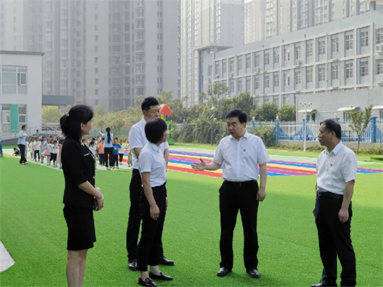 亢振峰先后深入新興幼兒園、新城七小、新城四中、西莊中學,實地察看校園建設情況,聽取學校黨建工作、德育工作、師德師風、教師隊伍建設和秋季開學、中高考綜合改革等情況匯報,并與校(園)長交流,了解大家的工作生活情況,聽取對教育高質(zhì)量發(fā)展的意見建議。