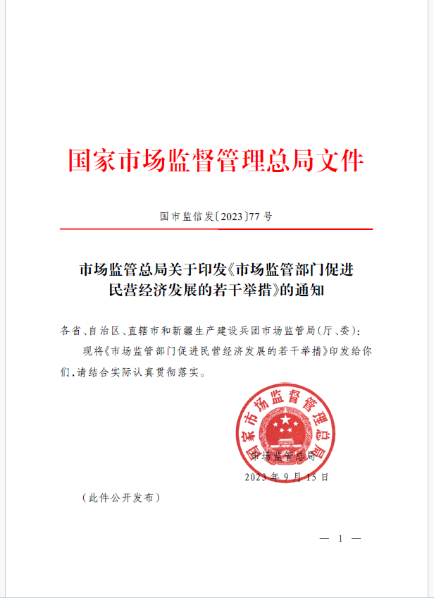 9月18日,市場監(jiān)管總局正式發(fā)布《市場監(jiān)管部門促進(jìn)民營經(jīng)濟(jì)發(fā)展的若干舉措》。這是7月14日《中共中央 國務(wù)院關(guān)于促進(jìn)民營經(jīng)濟(jì)發(fā)展壯大的意見》出臺(tái)以來,市場監(jiān)管部門貫徹落實(shí)黨中央、國務(wù)院決策部署出臺(tái)的制度舉措,對提振民營經(jīng)濟(jì)發(fā)展信心,依法規(guī)范和引導(dǎo)民營資本健康發(fā)展具有重要意義。