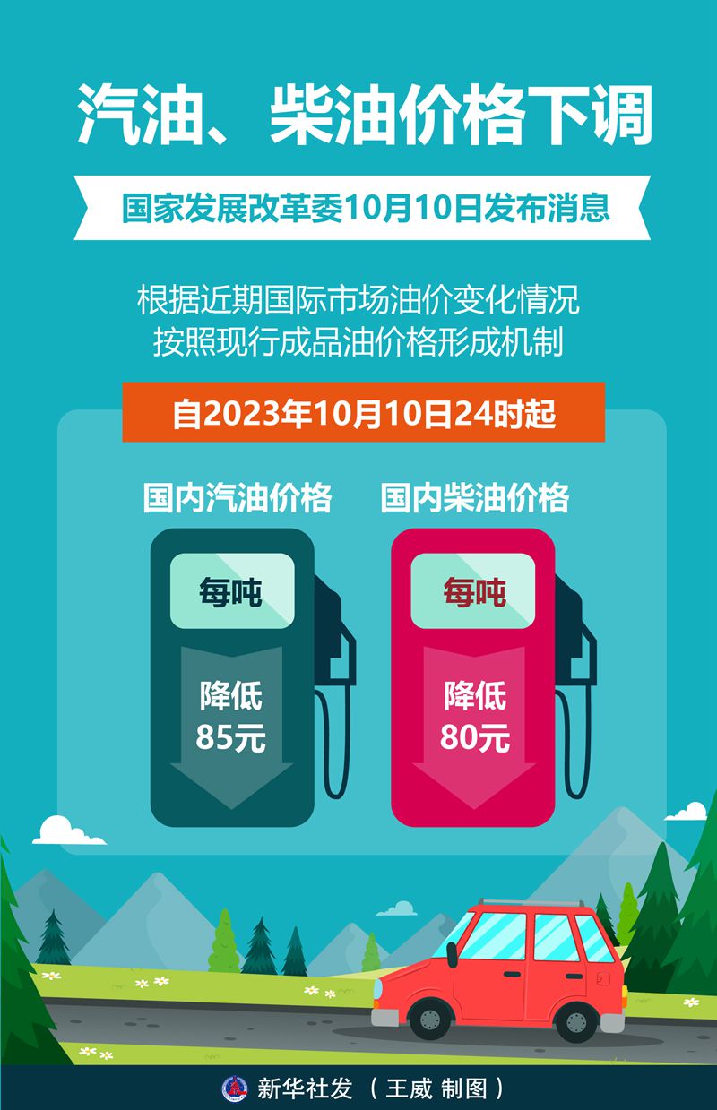 10月10日24時,新一輪成品油調(diào)價窗口開啟。國家發(fā)展改革委發(fā)布消息,根據(jù)近期國際市場油價變化情況,按照現(xiàn)行成品油價格形成機(jī)制,自2023年10月10日24時起,國內(nèi)汽油、柴油價格每噸分別降低85元和80元。