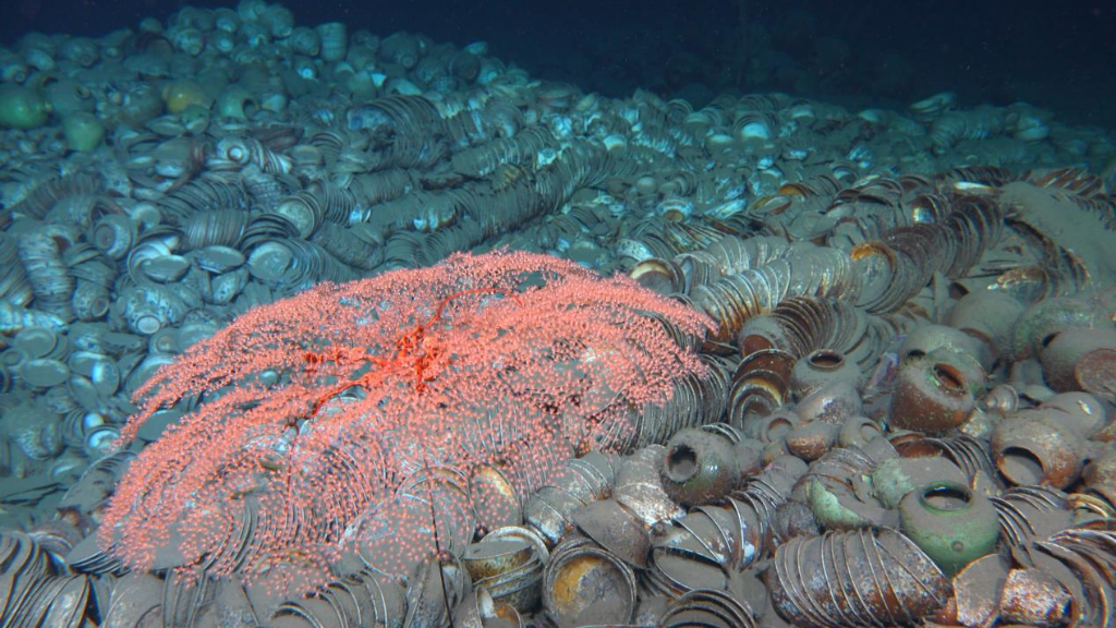 南海西北陸坡一號沉船遺址畫面。新華社發(fā)