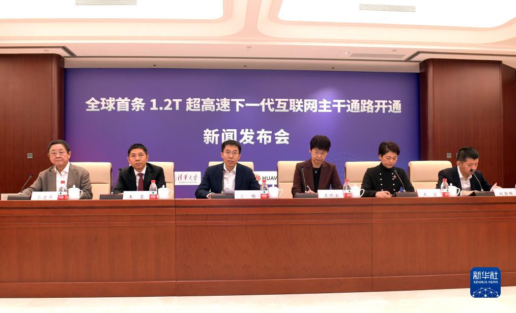 11月13日,全球首條1.2T超高速下一代互聯(lián)網(wǎng)主干通路開通新聞發(fā)布會在清華大學(xué)舉行。新華社發(fā)(清華大學(xué)供圖)