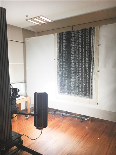 對石刻拓片進(jìn)行古籍?dāng)?shù)字化拍攝。中國國家圖書館供圖