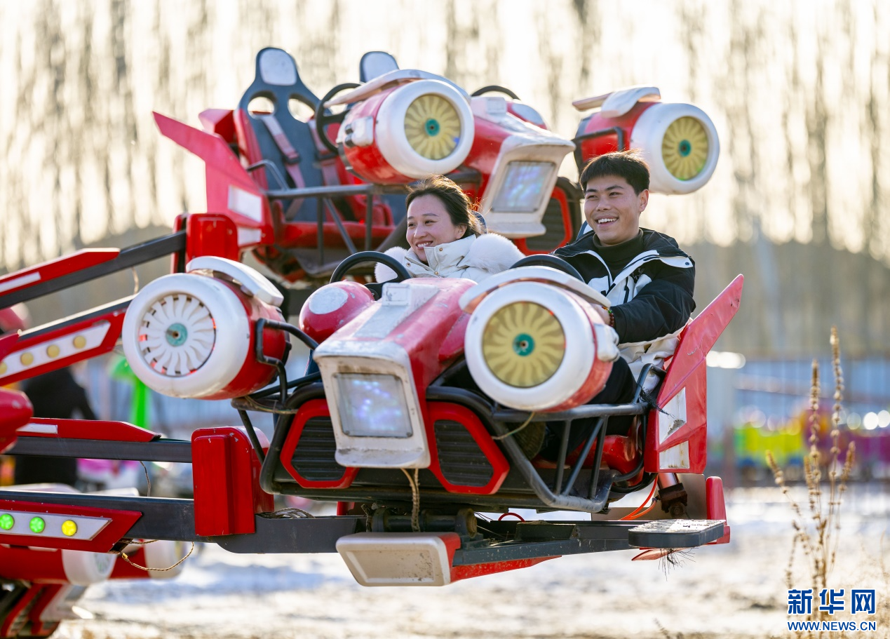 12月7日,游客在呼和浩特市玉泉區(qū)大庫倫村“冰雪大世界”內(nèi)體驗“旋轉(zhuǎn)飛機”項目。新華網(wǎng)發(fā)(丁根厚 攝)