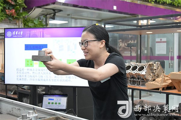 “取出這個(gè)氣孔針,扎到什么位置,放在哪里,還記不記得?”2021年,清華大學(xué)基礎(chǔ)工業(yè)訓(xùn)練中心的鑄造課短視頻在社交平臺(tái)上走紅,獲得百萬(wàn)點(diǎn)贊。授課老師扎著馬尾,穿一身黑色T恤,身前是堆滿黑色粉末的操作臺(tái)。“位置確定了,深度怎么確定?看,用氣孔針量一下剩下的距離。”她一邊拿著工具在操作臺(tái)側(cè)比劃著一邊說(shuō)道,“手指向下8到10個(gè)毫米,咱們?cè)鷼饪住?rdquo;動(dòng)作行云流水,一氣呵成。
