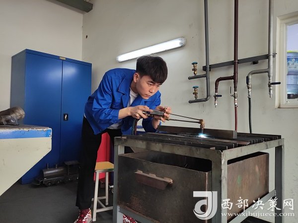 見到黨金鑫時,他正在實(shí)訓(xùn)車間緊張忙碌地備戰(zhàn)著第二屆全國職業(yè)技能大賽(世賽選拔賽),作為助教,他還同時肩負(fù)著帶領(lǐng)學(xué)生、傳授經(jīng)驗(yàn)的任務(wù)??赡苓B他自己都沒想到,在這所實(shí)訓(xùn)車間內(nèi),他能將自己的才華施展得淋漓盡致,靠著一門技術(shù)實(shí)現(xiàn)了“一飛沖天”。