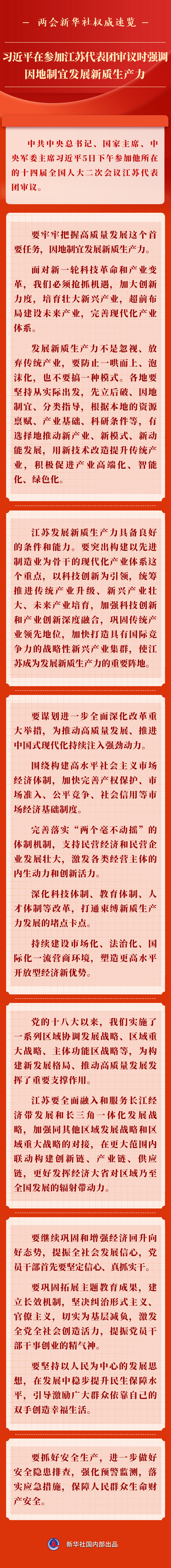兩會(huì)新華社權(quán)威速覽丨習(xí)近平在參加江蘇代表團(tuán)審議時(shí)強(qiáng)調(diào) 因地制宜發(fā)展新質(zhì)生產(chǎn)力