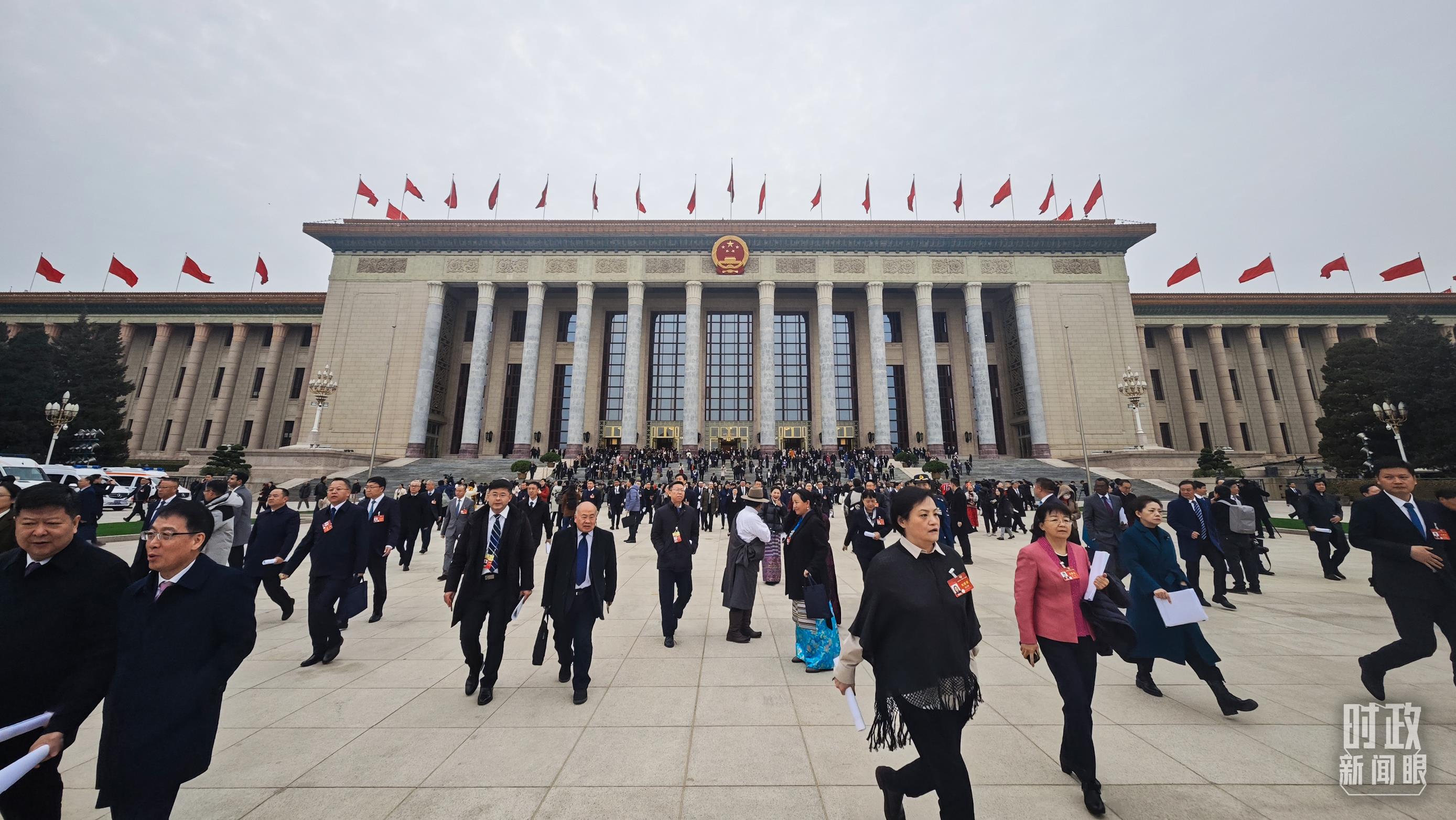 △3月4日,人民大會(huì)堂,政協(xié)委員們?cè)陂_幕會(huì)后離場。(總臺(tái)央視記者彭漢明拍攝)