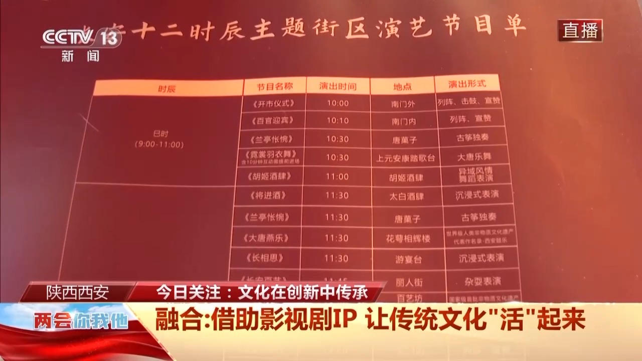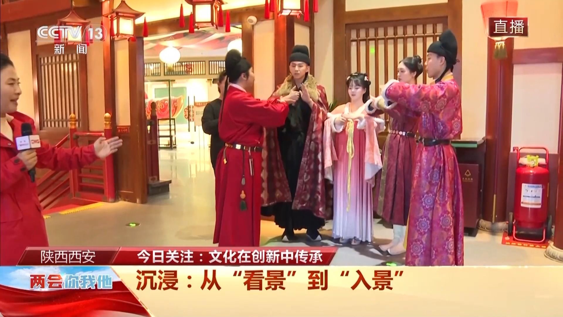 總臺(tái)記者譚海梅:我們現(xiàn)在已經(jīng)穿越回了一千多年前的唐朝。您看這古色古香的景致,還有身邊穿行而過(guò)的古人。這里其實(shí)是西安一處以唐文化為主題的沉浸式旅游街區(qū)——長(zhǎng)安十二時(shí)辰。這里根據(jù)同名影視劇里的場(chǎng)景打造而來(lái),開(kāi)業(yè)不到兩年,已經(jīng)成為來(lái)西安旅游的熱門(mén)打卡地之一?,F(xiàn)在是景區(qū)的淡季,但是現(xiàn)場(chǎng)依然非常熱鬧,周末每天的客流量都在8000人次左右。古城里的新場(chǎng)景為何如此火爆?我們圍繞三個(gè)關(guān)鍵詞來(lái)給大家梳理。