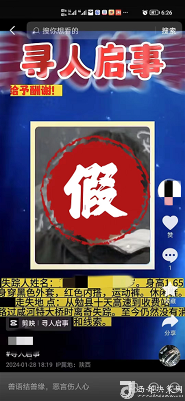 2024年1月28日晚,網(wǎng)民周某因與同學(xué)黃某在網(wǎng)上聊天過程中發(fā)生口角。周某為發(fā)泄情緒報復(fù)黃某,在短視頻平臺使用黃某照片,編造黃某在勉縣十天高速與咸河大橋之間走失至今沒有線索的謠言,此網(wǎng)絡(luò)謠言造成不良社會影響。