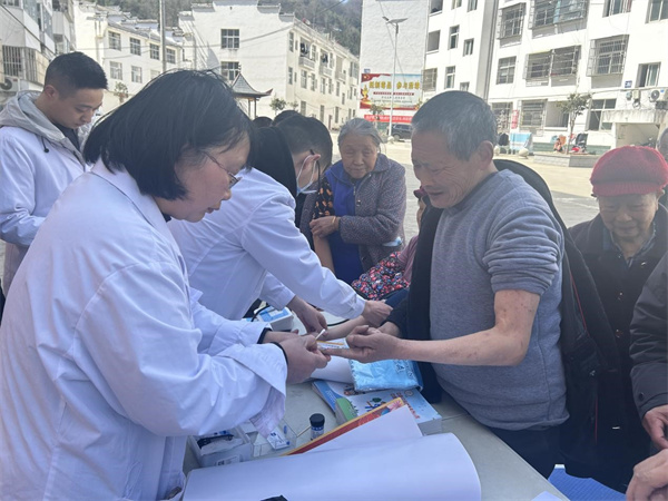 義診現(xiàn)場(chǎng),醫(yī)生為居民提供測(cè)量血壓、血糖等診療服務(wù),耐心詢問居民身體狀況,讓他們及時(shí)了解自己的身體狀況及相關(guān)疾病的預(yù)防。同時(shí),還為前來就診的老年人普及糖尿病、高血壓健康保健知識(shí)和日常生活的養(yǎng)生常識(shí),引導(dǎo)他們樹立防護(hù)意識(shí),培養(yǎng)健康生活習(xí)慣。